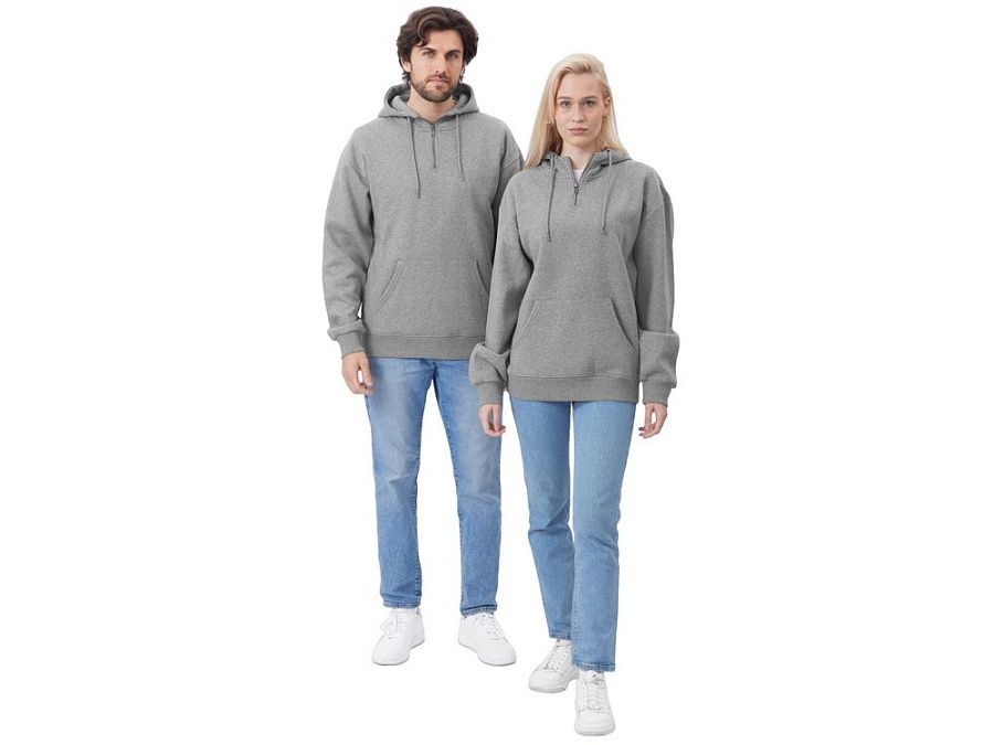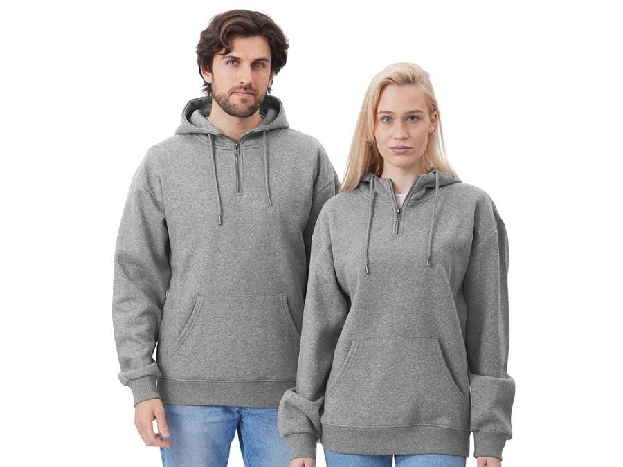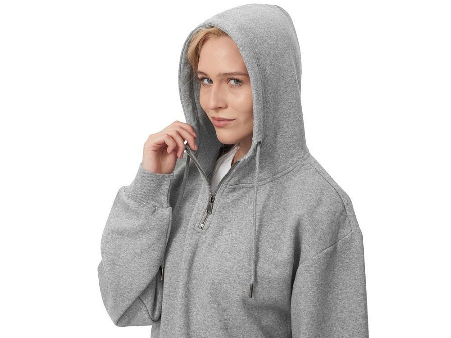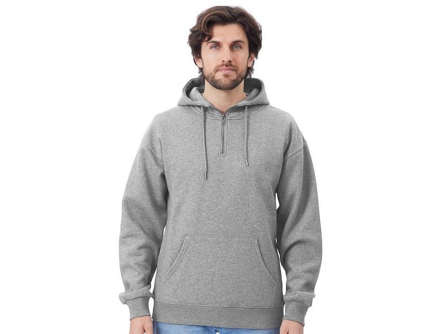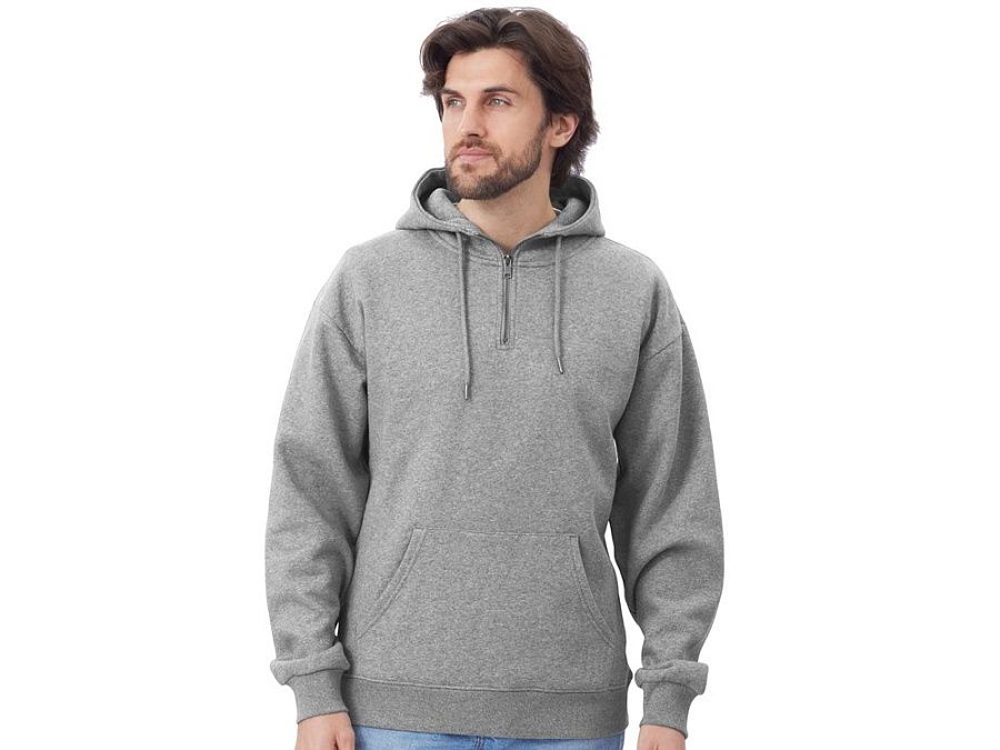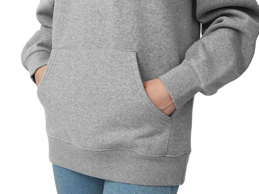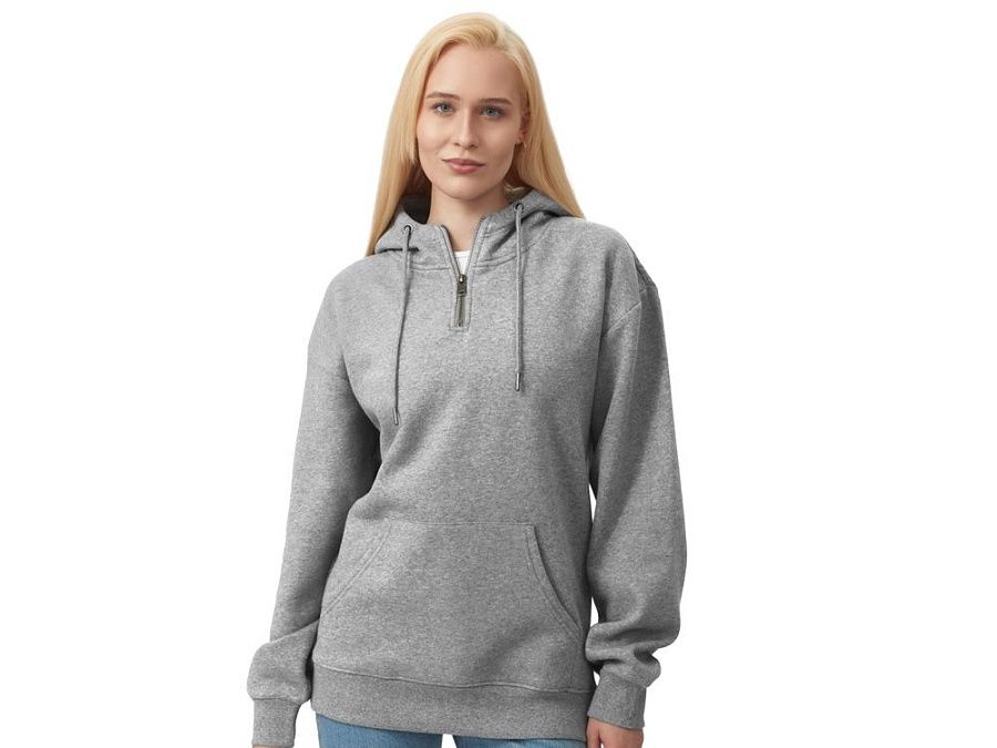 Худи с капюшоном ворот на молнии. Шнур в капюшоне с металлическими наконечниками. Отделка горловины спинки внутри тесьмой, Риб 2х2 по низу изделия и манжетам. Удобный карман кенгуру.