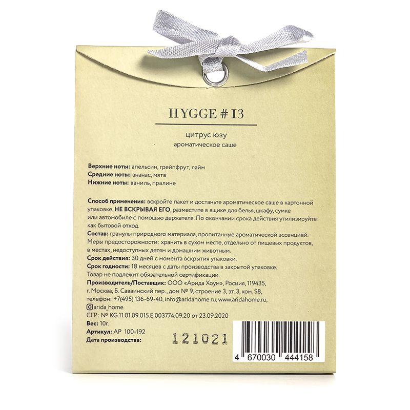 Вскройте пакет и достаньте ароматическое саше в картонной упаковке. НЕ ВСКРЫВАЯ САШЕ, разместите в ящике для белья, шкафу, сумке или автомобиле с помощью держателя. По окончании срока действия утилизируйте как бытовой отход.
