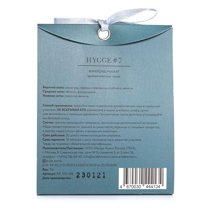 Вскройте пакет и достаньте ароматическое саше в картонной упаковке. НЕ ВСКРЫВАЯ САШЕ, разместите в ящике для белья, шкафу, сумке или автомобиле с помощью держателя. По окончании срока действия утилизируйте как бытовой отход.