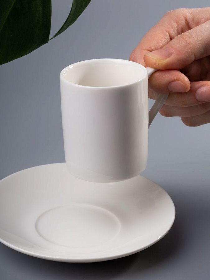 чашка: диаметр 5,6 см, высота 6,4 см, ширина с ручкой 8,1 см; блюдце: 12,6х12,6х1,6 см см; упаковка 17,6х18,6х10,3 см