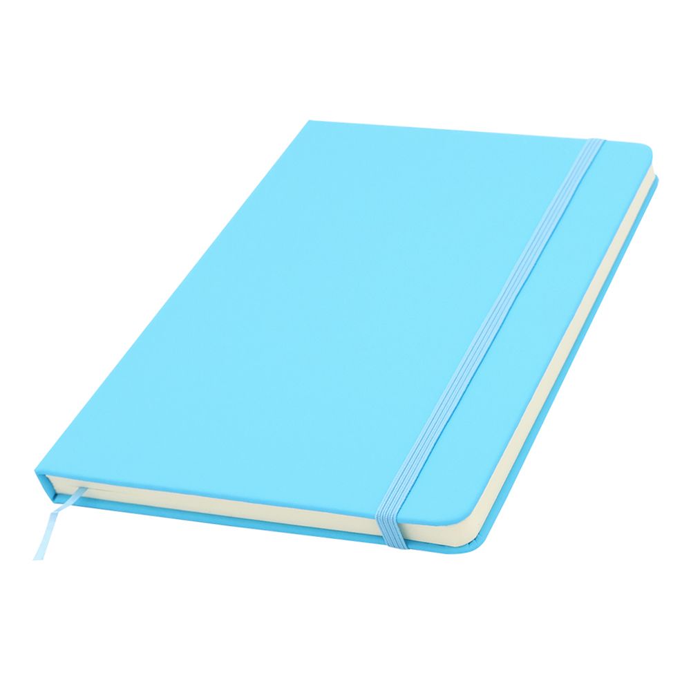 Блокнот формата А5 с твердым покрытием из PU-материала с имитацией рисунка кожи, с эластичной застежкой для закрытия и текстильной закладкой в цвет блокнота, 192 страницы / 96 листов, плотность 70г/м, страницы с черными линиями. Цвет по PANTONE® (максимально приближен): 298 С