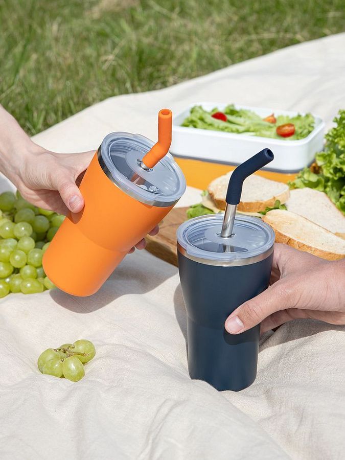 корпус - нержавеющая сталь, 18/8; крышка - пластик; трубочка - нержавеющая сталь, пищевой силикон
