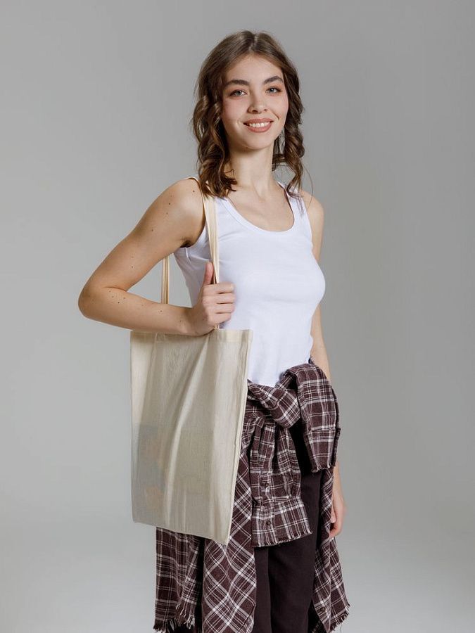 Классический шопер из органического хлопка. Неокрашенное полотно делает сумку настоящим универсальным холстом для логотипов и других маркетинговых сообщений.