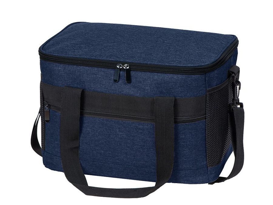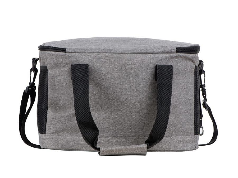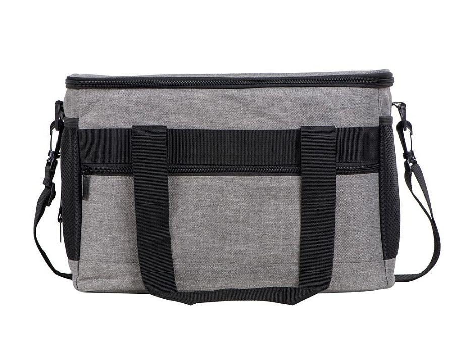 Вместительная сумка-холодильник со специальной конструкцией дна, предотвращающей протекание наружу жидкости от размораживания. Поверхность сумки всегда остается сухой. Основное отделение и карман спереди на молнии. Сбоку 2 сетчатых кармана. Съемный плечевой ремень регулируется по длине. Короткие ручки фиксируются вместе застежкой-липучкой. В комплекте открывалка для бутылок.
