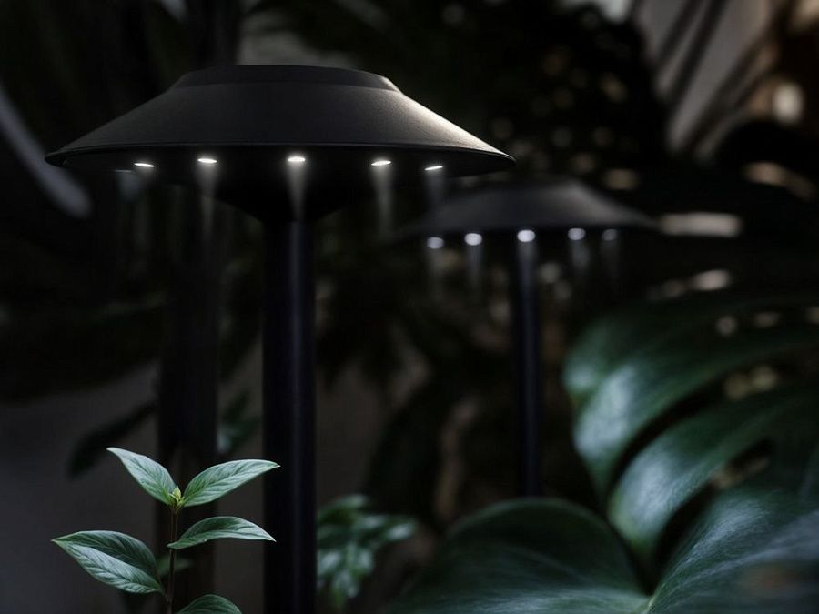 Светильник Ufology в лаконичном корпусе прекрасно подходит для освещения садовых дорожек, тропинок и декоративных элементов на газоне. Благодаря оригинальной конструкции плафона — в форме зонтика — глазам всегда будет комфортно в темноте — без яркого, бьющего света.