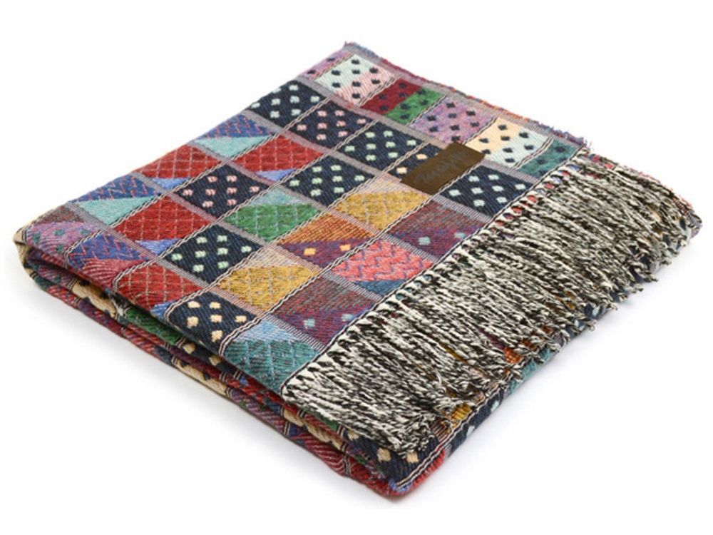 • Плед в стиле «пэчворк» украшен бахромой, оригинальный дизайн органично впишется в интерьер и станет стильным украшением вашего дома. Постелите плед на диван или на кровать, возьмите с собой на дачу или используйте плед-покрывало в кресле-качалке.