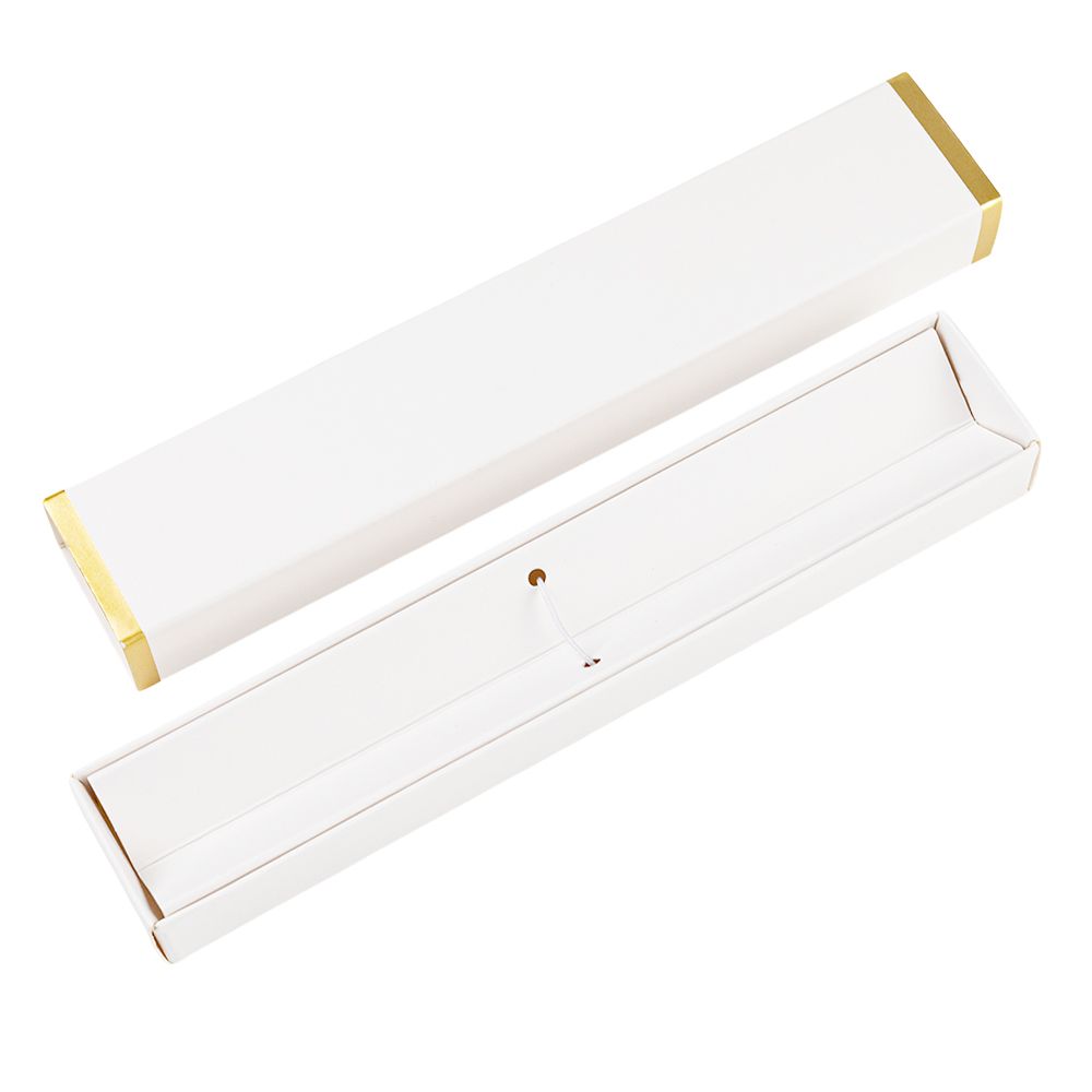 Бумажная коробочка для ручки. Ложемент V-образный с резинкой, фиксирующей ручку. По краям крышки металлизированные декоративные элементы, для красоты. В такой коробочке подаренная ручка будет выглядеть ещё дороже, словно фотомодель в вечернем платье.