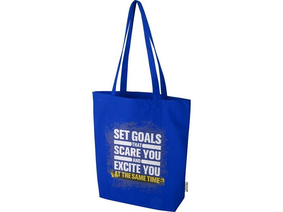Эко-сумка Florida с широким дном, изготовленная из 100% переработанного хлопка, сертифицированного согласно GRS, плотностью 270 г/м², станет более ответственным и долговечным выбором для ваших повседневных нужд. Благодаря широкому дну в нем предусмотрено дополнительное место для самых необходимых вещей на любой случай — от похода по магазинам до повседневной прогулки. Длина ручки: 30 см. Объем: 10 литр. Хлопок.