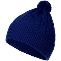 Однослойная шапка фактурной вязки с помпоном и широким отворотом.