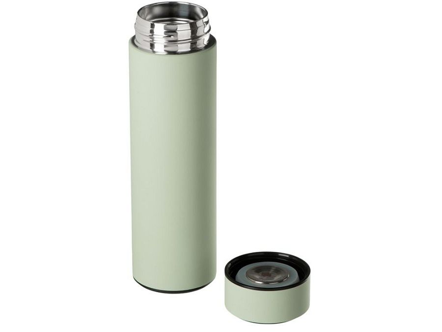 Вакуумный термос «Module X» не только сохраняет ваши напитки горячими, но и показывает, насколько они горячие! Уникальная особенность термоса — это сенсорный индикатор температуры, расположенный в крышке. Чтобы узнать температуру внутри термоса, достаточно прикоснуться к поверхности крышки. Батарейку CR2032 по истечении срока работы (1-2 года) можно заменить — для этого открутите верхнюю часть крышки против часовой стрелки и аккуратно поменяйте элемент питания.