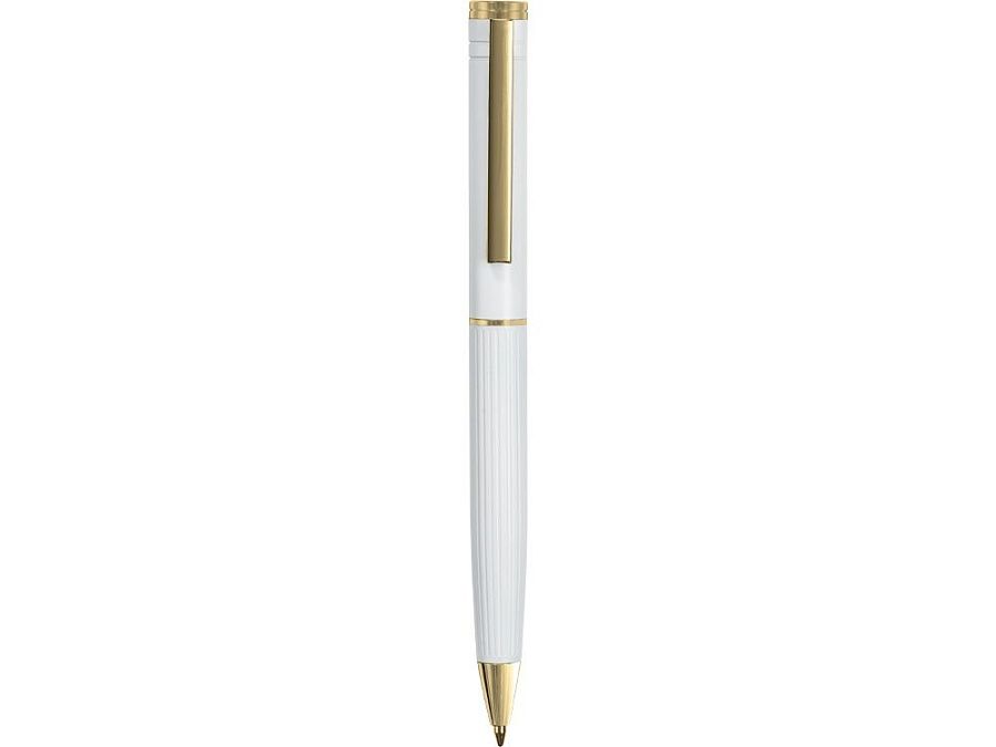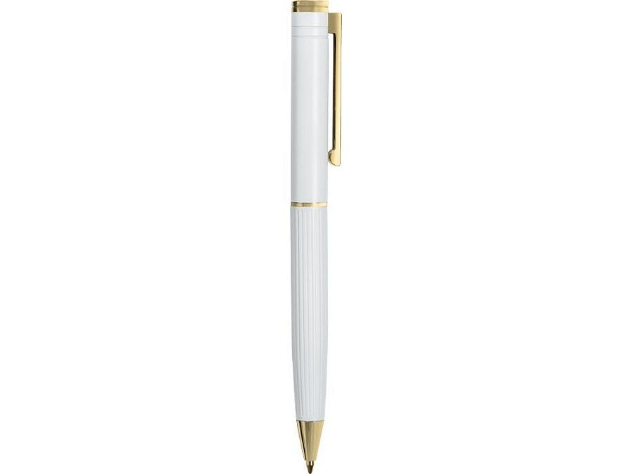 Современное прочтение классической ручки с золотистыми деталями, при гравировке верхней части рядом с клипом вскрывается золотистым слоем, ребристая часть вскрывается серебром.