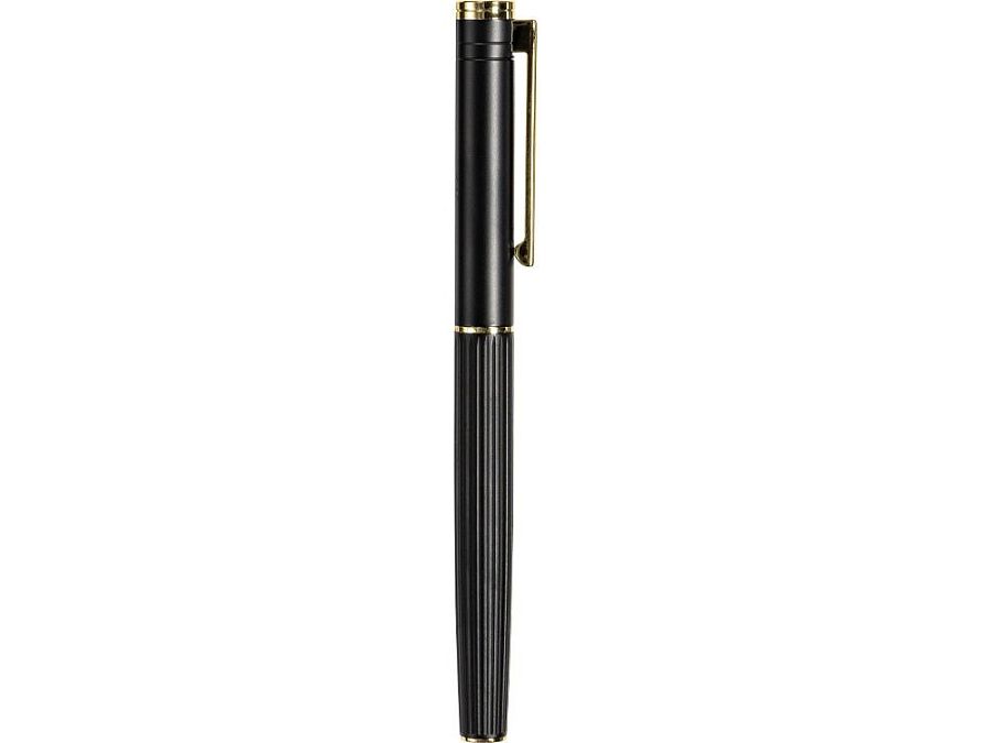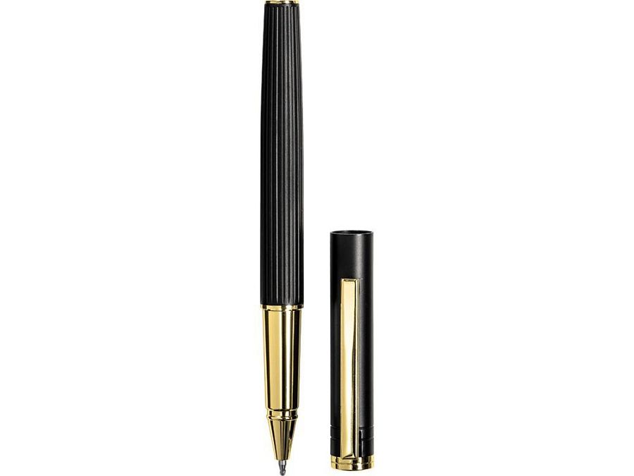 Современное прочтение классической ручки с золотыми деталями, при гравировке колпачка вскрывается золотистый слой, корпуса - серебристый.