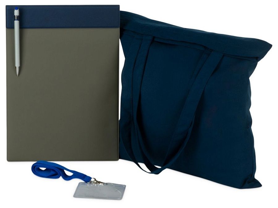 Базовый набор для конференций. В наборе: магнитный планшет для бумаг, ручка для записей, ланъярд и чехол для бейджа участника и шоппер, в который все можно удобно сложить.