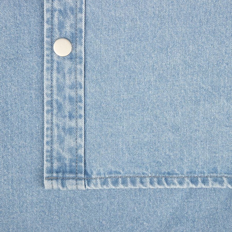 Джинсовая куртка-рубашка унисекс на кнопках прямого силуэта.