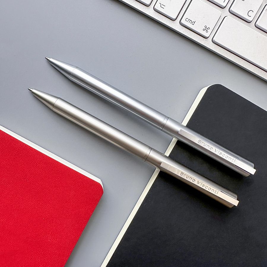 Шариковая ручка из коллекции «Bergamo» в металлическом корпусе. Ручка автоматическая, с легким поворотным механизмом подачи стержня. Надежный пишущий узел d 0,7 мм (от швейцарского производителя Premec) гарантирует высокое качество так же, как и пигментные чернила Dokumental (Германия). Благодаря им писать ручкой «Bergamo» от Bruno Visconti одно удовольствие – она мягко скользит по поверхности бумаги, оставляя ровную, четкую линию.