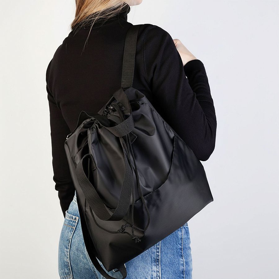 Вместительный передний карман на липучке для быстрого доступа к мелким аксессуарам. Основное отделение на шнурке с аксельбантами (стопперы, фиксаторы) для быстрого закрытия.