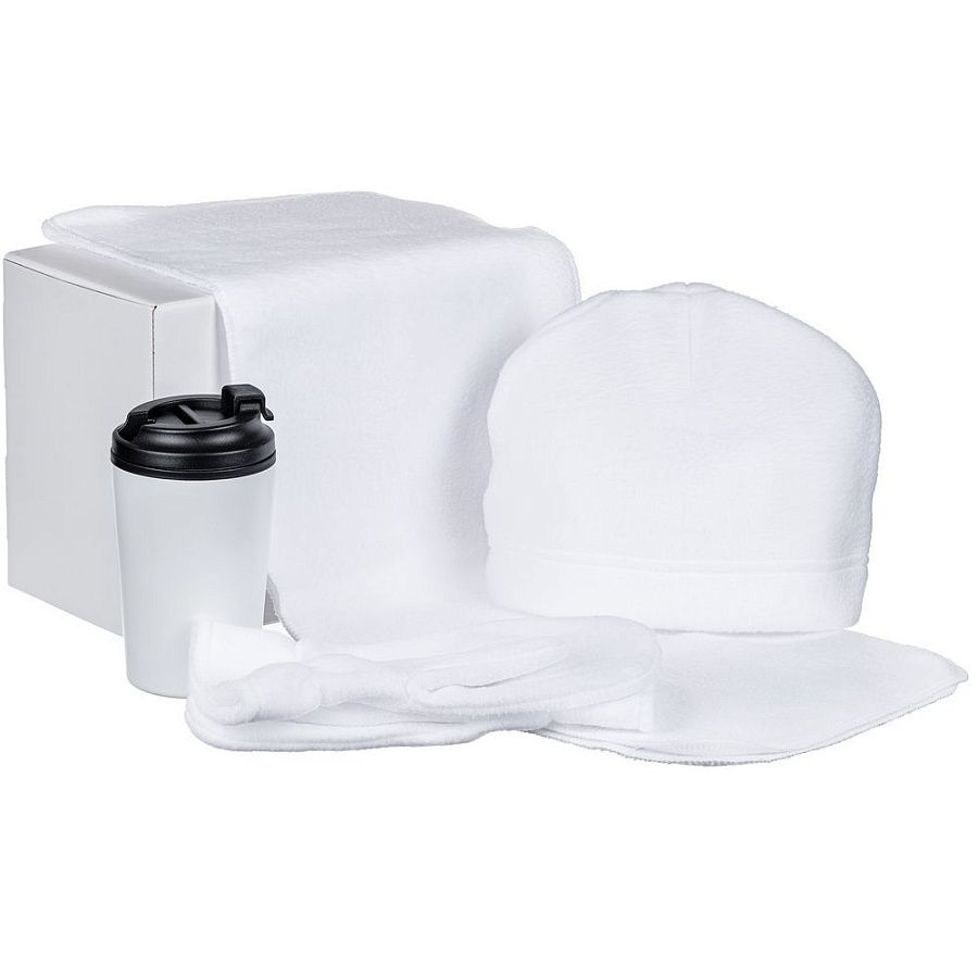 шапка, шарф, варежки - полиэстер 100%; флис; термостакан - нержавеющая сталь, полипропилен