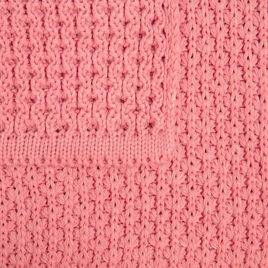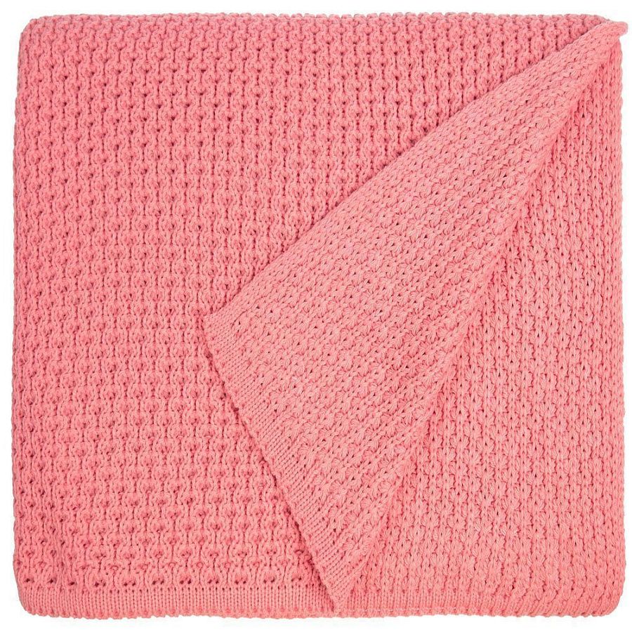 Модель: однотонный плед с фактурной вязкой, которая позволяет сделать его воздушным и объемным. Чередуя различные типы петель на гладком полотне, можно вывязать любую графику — логотип, текст, товарный знак.