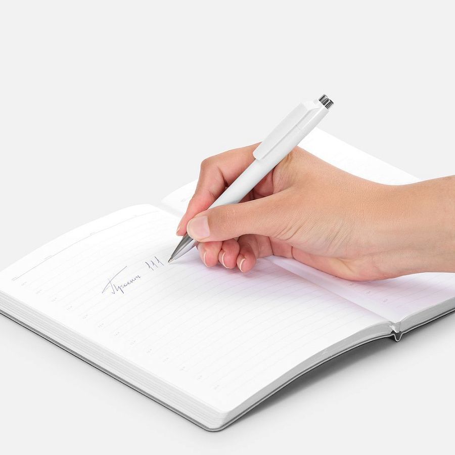 Пластиковая ручка с глянцевым корпусом и хромированными деталями. Большой клип идеален для нанесения логотипа компании.