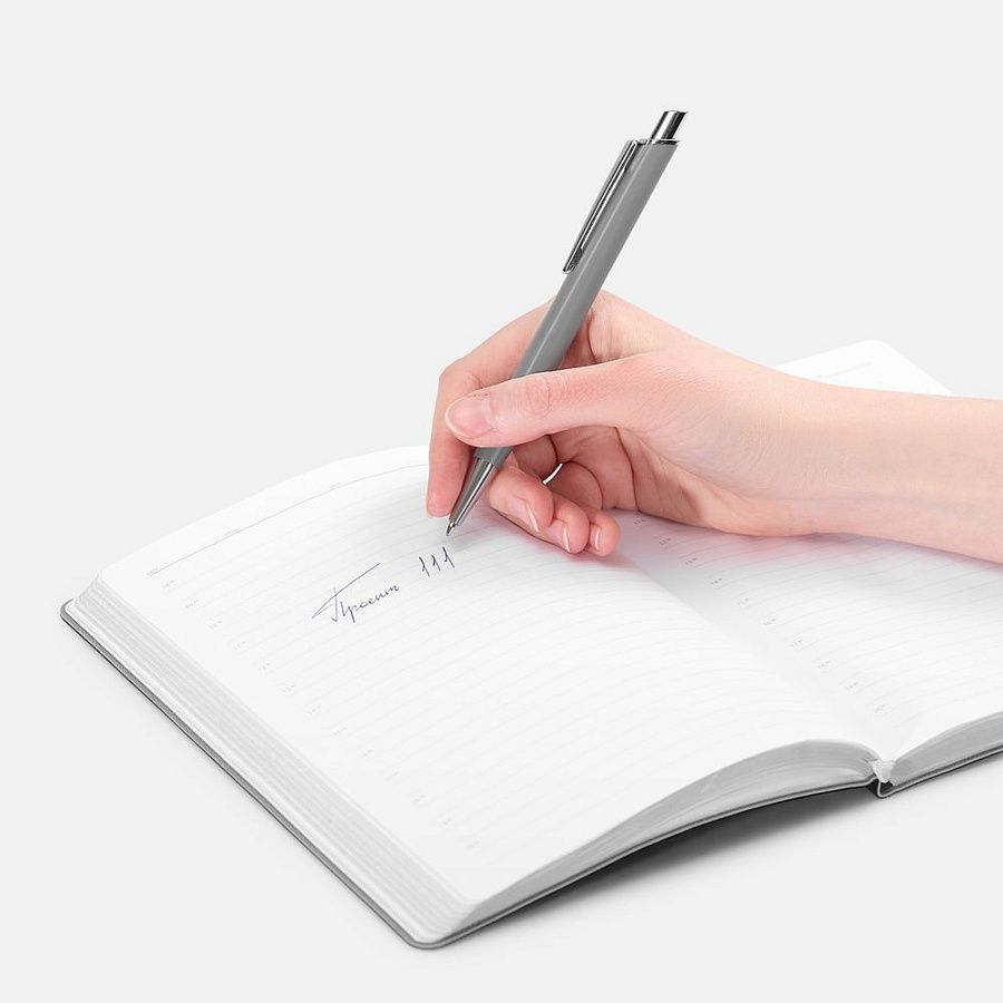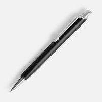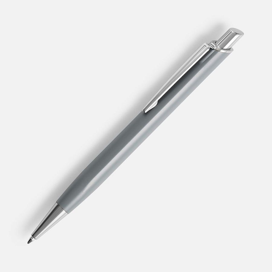 Металлическая ручка с матовым корпусом и хромированными деталями.