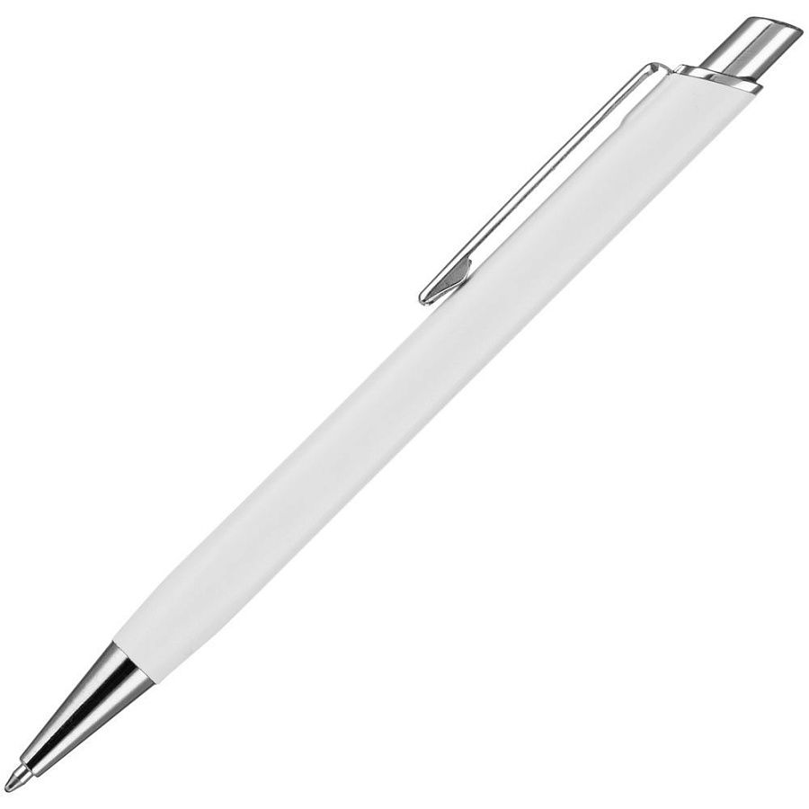 Металлическая ручка с матовым корпусом и хромированными деталями.