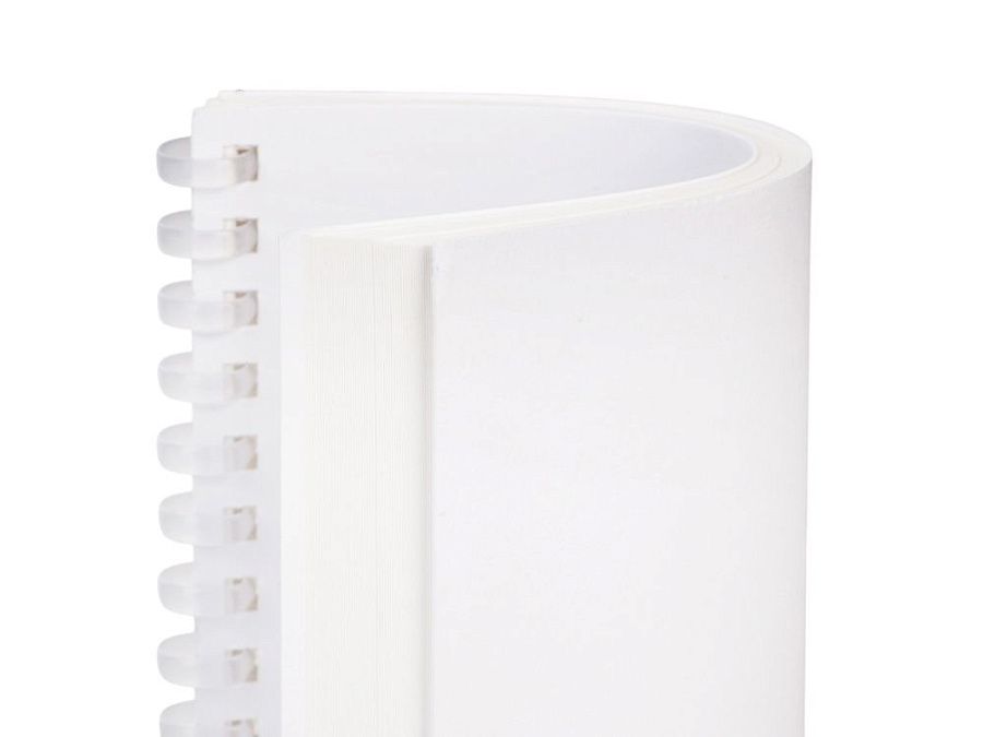 Мягкая прозрачная спираль облегчает блокнот, а гибкая обложка позволит сэкономить место в сумке, свернув блокнот.