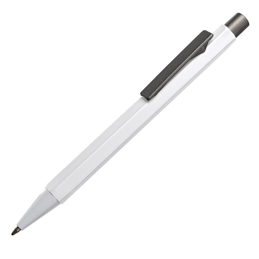Стильная металлическая ручка матового цвета выглядит презентабельно и солидно. Вес достаточно тяжелый. Корпус ручки имеет шестигранное сечение. Ручка комфортно ложится в руку и очень удобна в использовании. • Pantone, близкий к White• Размер 11.5 х 138 мм• Шестигранный корпус из алюминия• Металлический клип-прищепка (наш фирменный)• Носик и кнопка из пластика• Нажимной механизм подачи стержня• Пулевидный пишущий узел 1.0 мм• Длина линии письма 1000 - 1200 м • Чернила Dokumental. Цвет чернил синий• Сменный стержень Parker type
