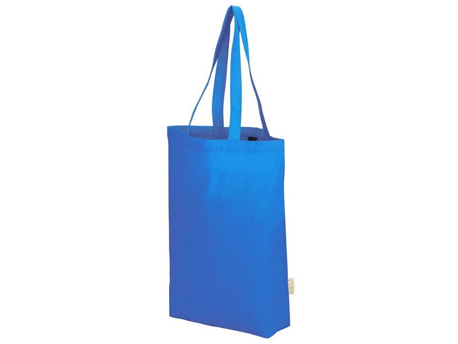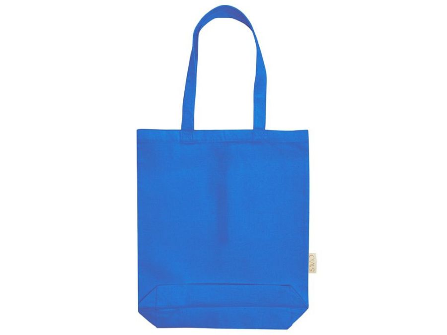 Удобная сумка-шоппер из переработанного хлопка. Можно хранить в сложенном виде и фиксировать с помощью эластичной ленты, застегивающейся на кнопку.