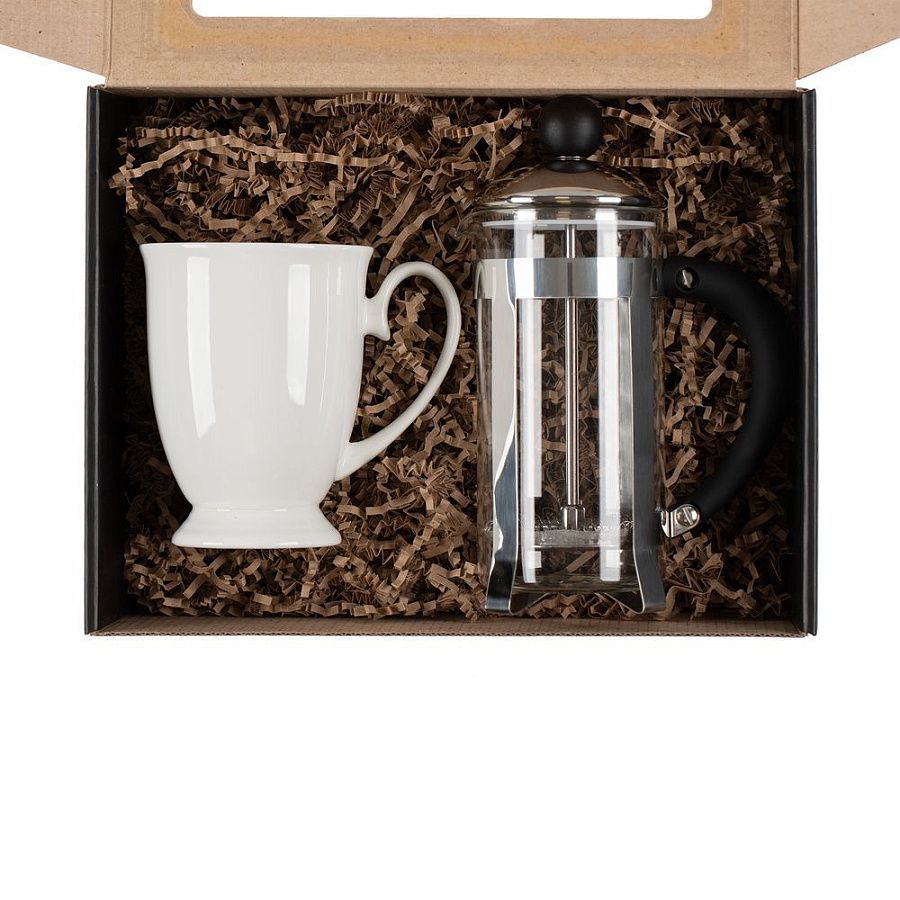 френч-пресс: высота 19 см, диаметр 7 см, ширина с ручкой 11,5 см; кружка: диаметр сверху 8,5 см; высота 10,8 см; дно 6 см; коробка: 25,9х19,7х9 см