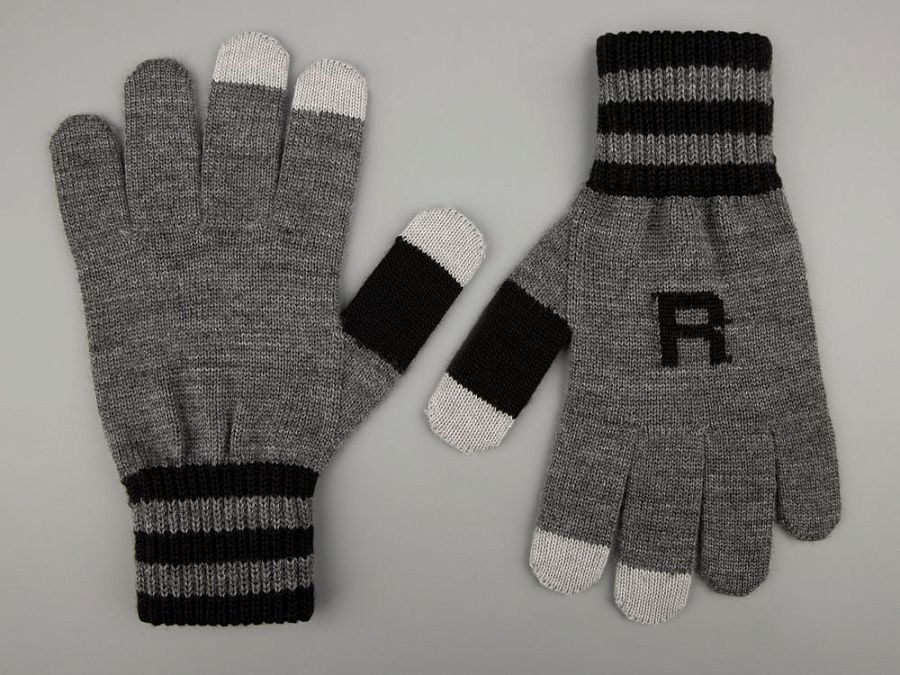 Перчатки c токопроводящей нитью на пальцах в фирменной цветовой гамме.