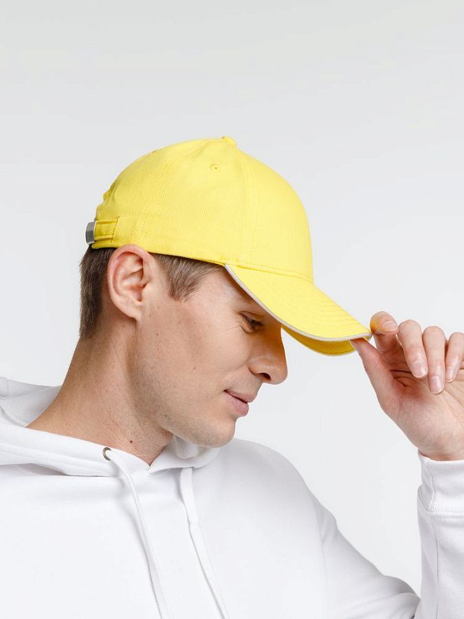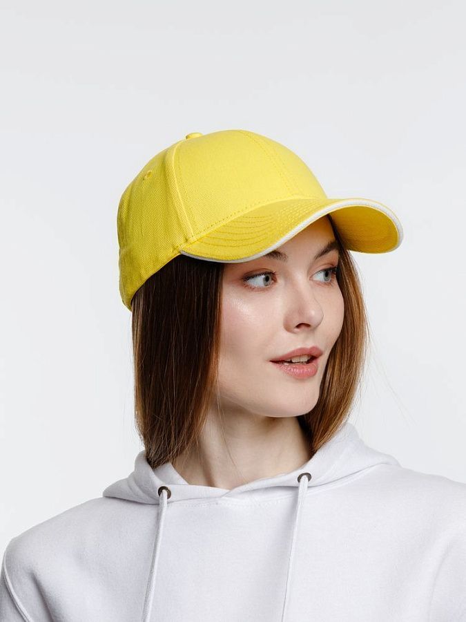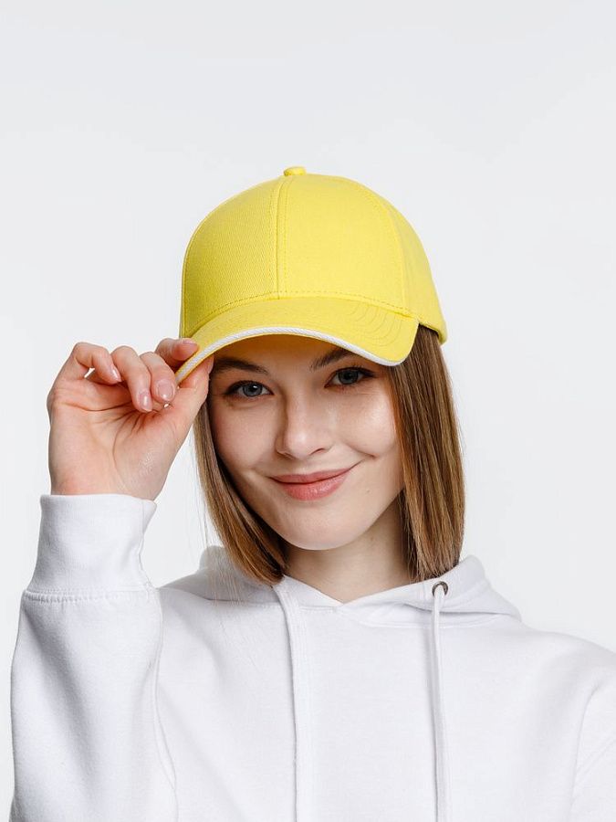 - Плотный козырек-сэндвич с контрастной вставкой