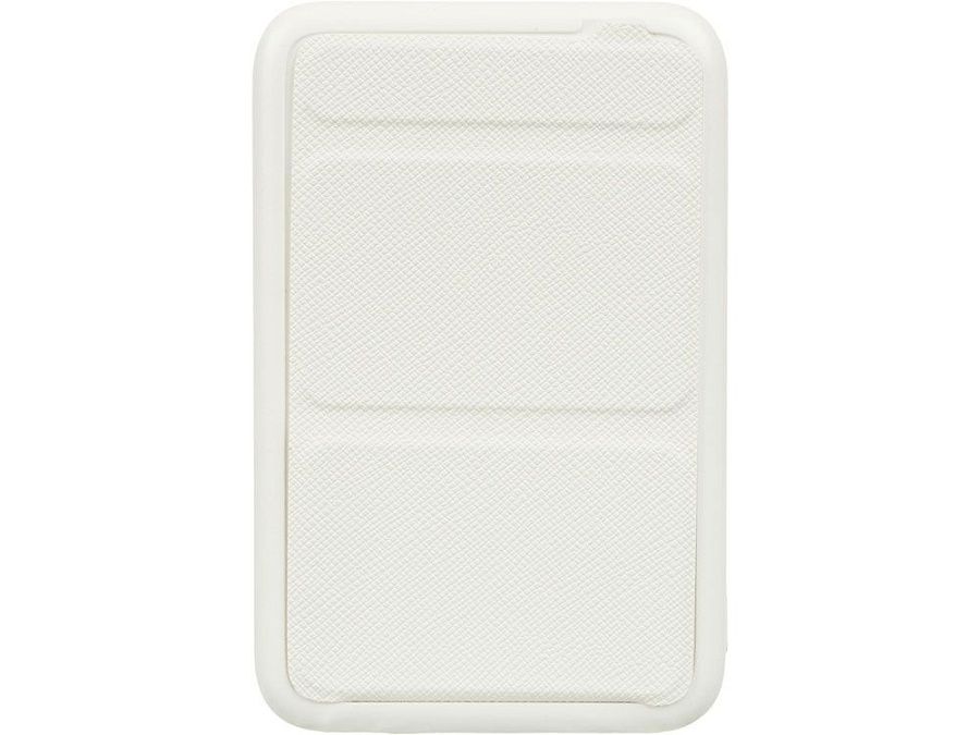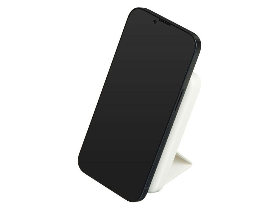 Сзади расположена пластичная складная подставка из качественного полиуретана с зернистой текстурой. В развернутом виде на столе подставка позволяет пользоваться смартфоном одной рукой, при этом, благодаря магнитным держателям, смартфон может быть расположен как вертикально, так и горизонтально.