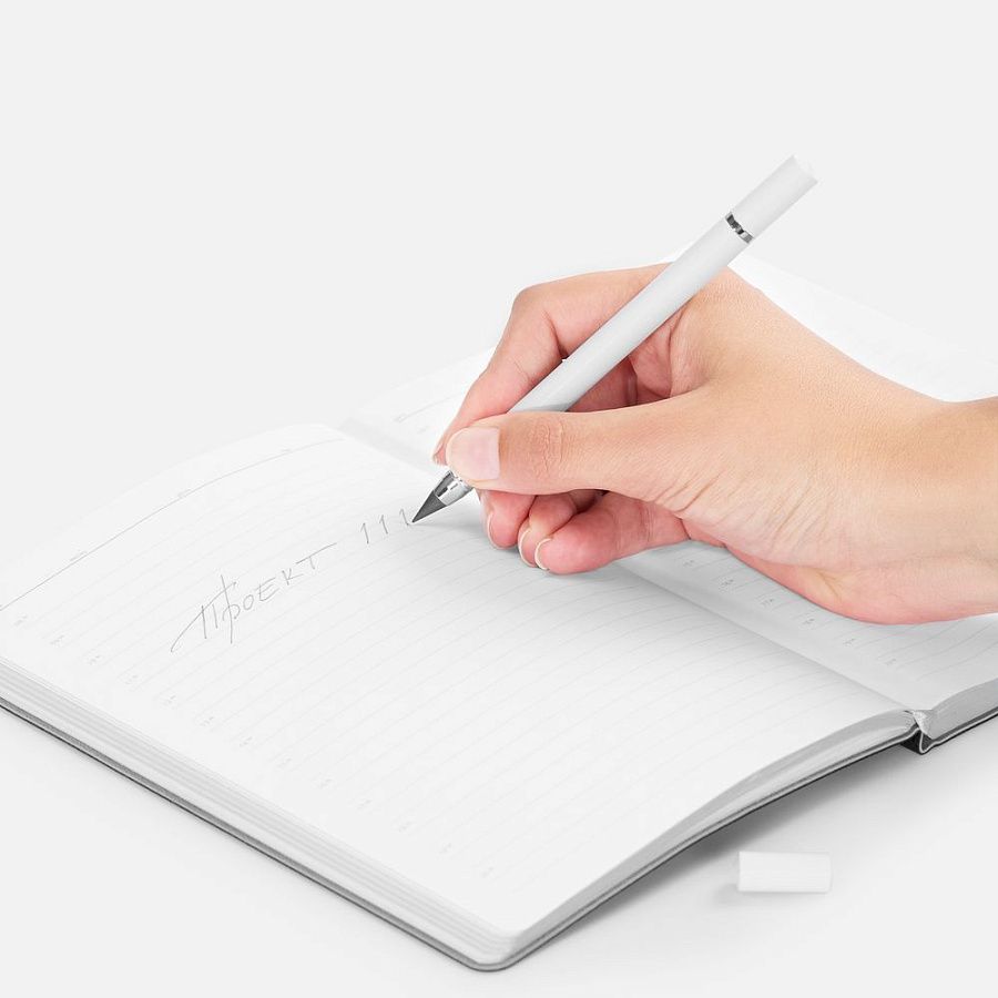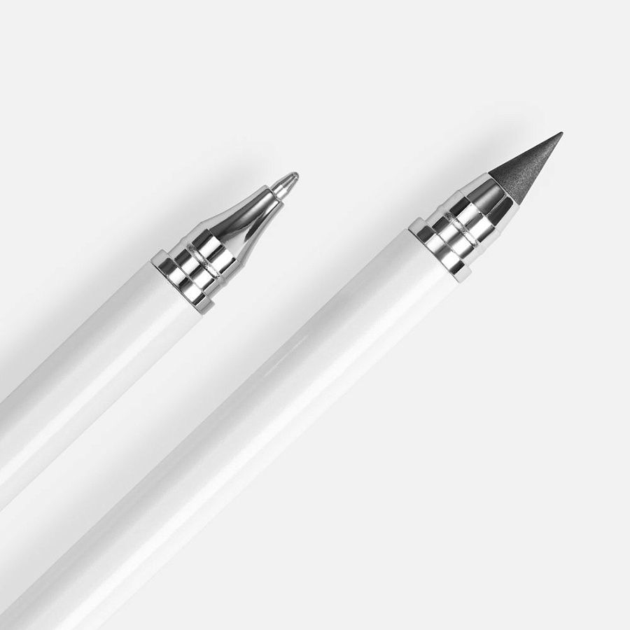 Изготовленный из сплава графита со свинцом долговечный наконечник карандаша не требует заточки, а закончившийся стержень в ручке легко заменить. Оба наконечника закрываются защитными колпачками.