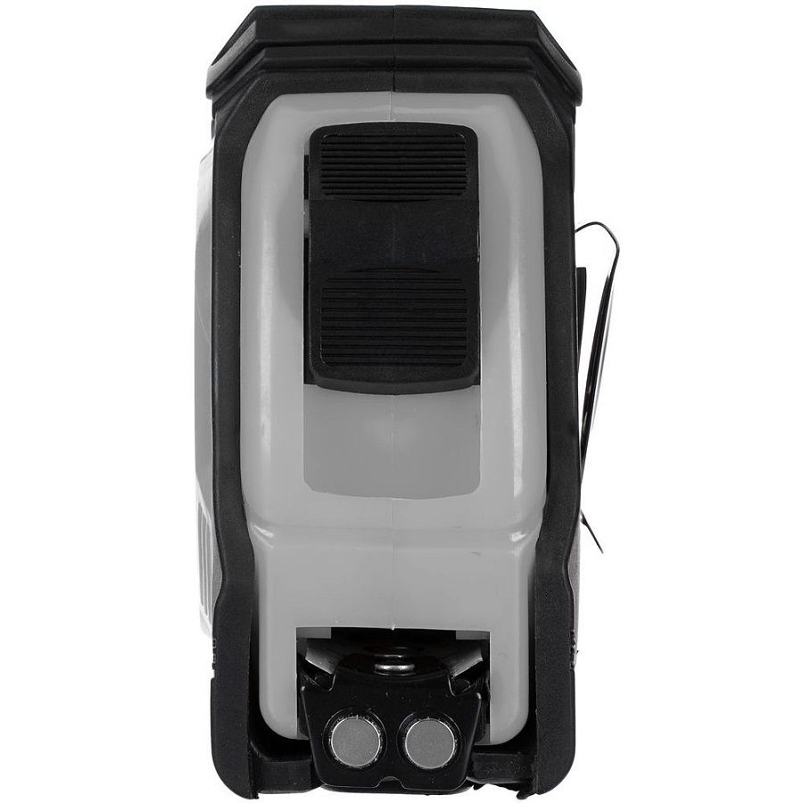 Длина измерительной ленты 5 метров позволяет работать на больших расстояниях. Лента оснащена магнитным наконечником для надежного сцепления с металлическими поверхностями. Корпус рулетки выполнен из прочного пластика с накладкой из ПВХ, которая предотвращает скольжение инструмента в руке.