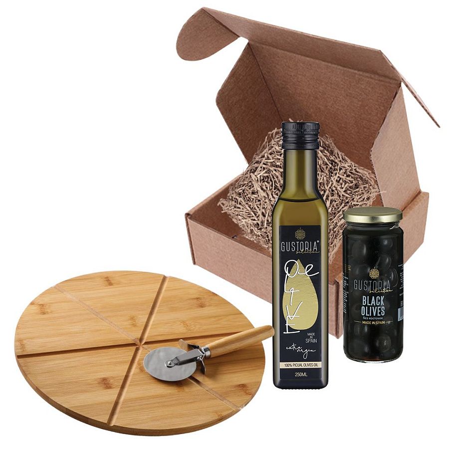 Подарочный набор "Пицца-маэстро": маслины, оливкое масло, доска