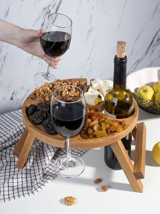 Удобные углубления для двух бокалов и специальное место для бутылки просто созданы для безмятежного наслаждения любимыми напитками. Продуманные отсеки для изысканных закусок позволят добавить изюминку любому ужину и превратить его в настоящий гастрономический праздник!