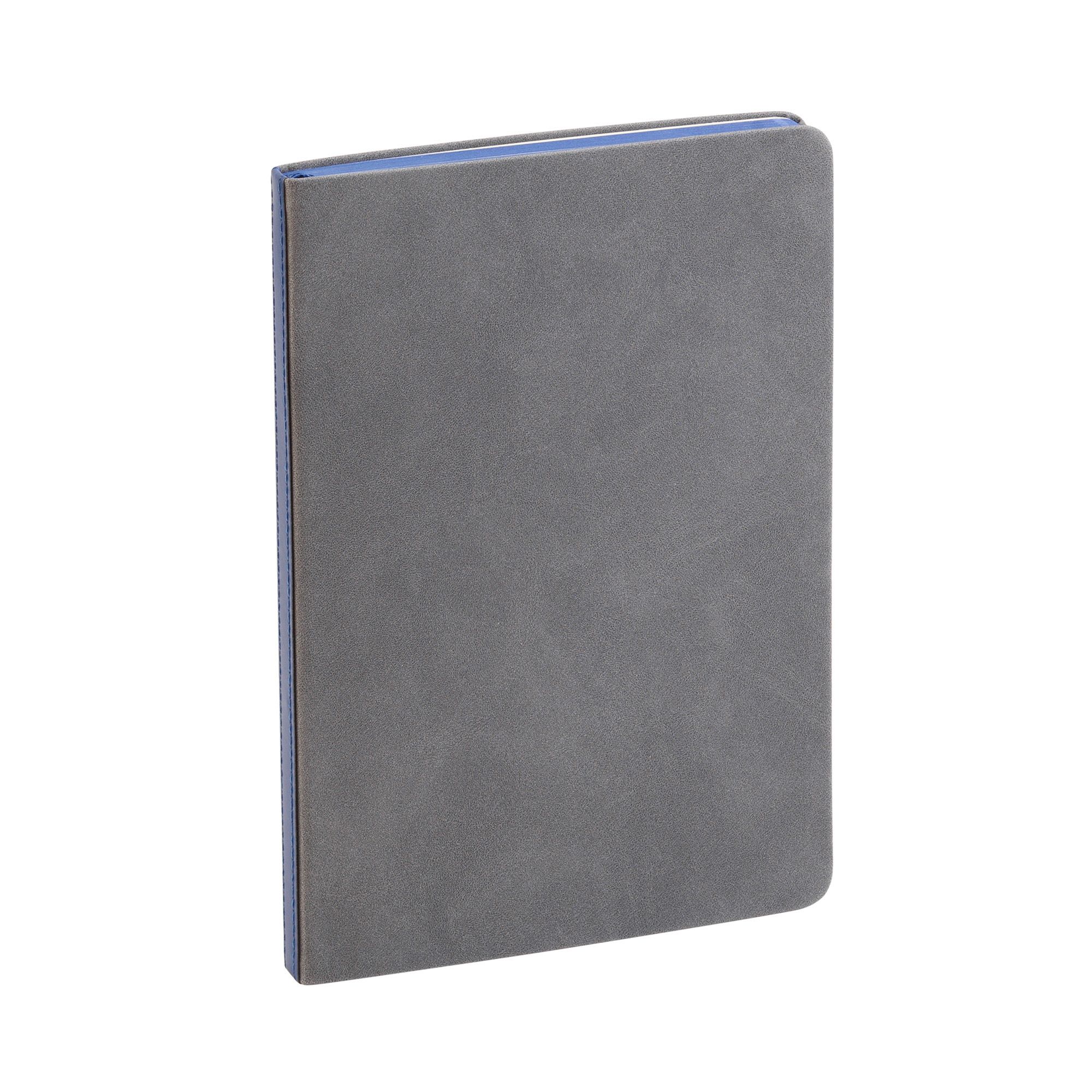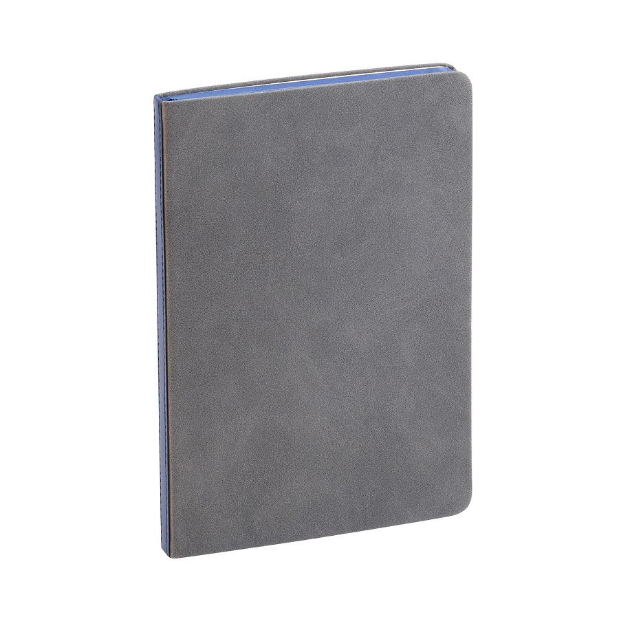 Ежедневник "Турин" в универсальном сером цвете с контрастной вставкой в корешке, придающей корпоративную идентичность. Стильный образ завершает цветной срез и ляссе в цвет вставки.