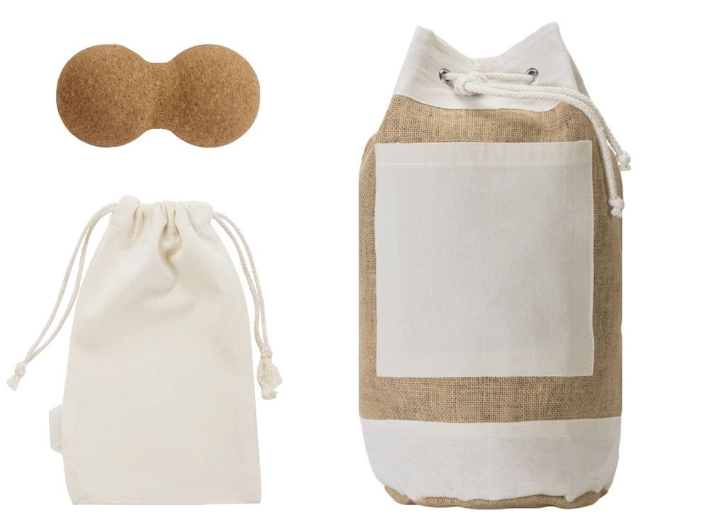 Двойной массажный мяч, напоминающий по форме арахис, выполнен из пробки и подходит для массажа групп мышц вдоль позвоночника и шеи. Простое прокатывание мяча вдоль этих групп мышц поможет стимулировать кровообращение и снимет напряжение. Мяч имеет универсальный размер, который подходит для взрослых и детей. Массажер может применяться как до тренировки (для разогрева мышц), так и после (для их расслабления).