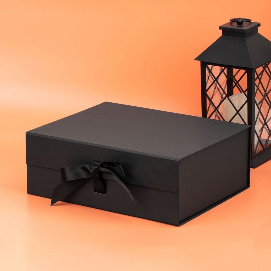 Коробка из переплетного картона, кашированного тонированной в массе крафтовой бумагой. Крышка на двух магнитах дополнительно фиксируется лентой.Толщина картона 2 мм.