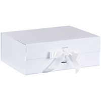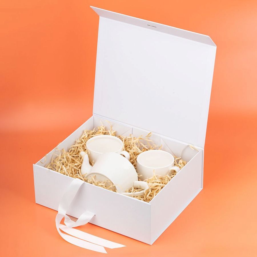 Коробка из переплетного картона, кашированного крафтовой бумагой. Крышка на двух магнитах дополнительно фиксируется лентой.Толщина картона 2 мм.