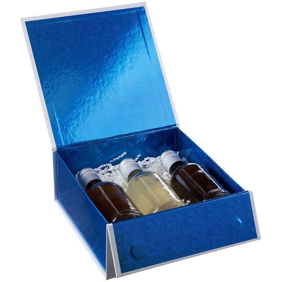 Коробка из переплетного картона, кашированного мелованной бумагой с глянцевой ламинацией. Крышка на двух магнитах дополнительно фиксируется лентой.Толщина картона 2 мм.