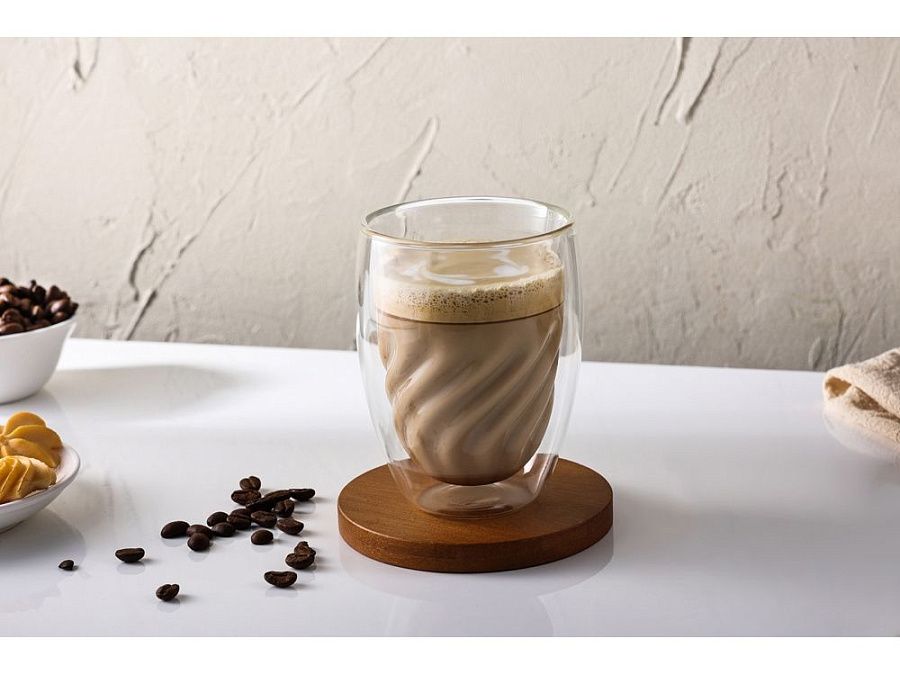 - Рельефный дизайн – уникальная внутренняя форма с объемными изгибами делает стакан эффектным и придает напиткам особую глубину.