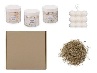 Подарочный набор с солью для ванны и свечой, цвет: белый, артикул 350069