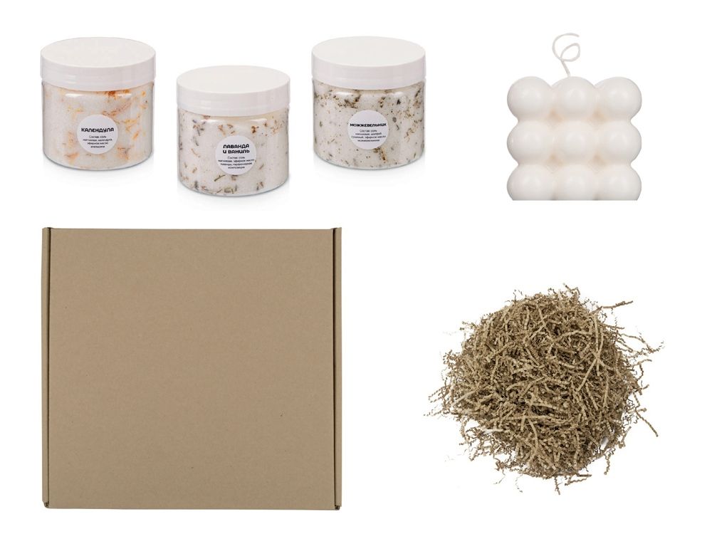 Романтичный набор для милых дам на 8 Марта. Свеча подарит атмосферу уюта и тепла. Её нежный и «воздушный» дизайн будет прекрасно смотреться в интерьере любой комнаты и даже ванной. Магниевая соль для ванн — это прекрасный способ провести время не только с удовольствием, но и с пользой для здоровья. Магний снимает спазмы и напряжение с мышц и позволяет быстрее восстановиться после микротравм при занятиях спортом. В набор входит три банки соли с ароматами календулы, можжевельника и лаванды с ванилью. Лаванда и Ваниль. Состав: соль магниевая, эфирное масло лаванды, парфюмерная композиция Календула. Состав: соль магниевая, календула, эфирное масло апельсина Можжевельник. Состав: соль магниевая, шалфей сушеный, эфирное масло можжевельника - свеча с хлопковым фильтром; - снимает стресс и напряжение; - подарочная коробка с наполнителем входит в набор. Ванны с английской солью можно принимать 2—3 раза в неделю по 15—20 минут. Соль рекомендуется растворять при температуре воды не ниже 37 градусов.