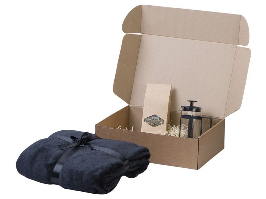 Набор продуман до мелочей. Когда зимним вечером подходит время чая, хочет завернуться в мягкий и теплый плед и наслаждаться любимым напитком, который можно заварить во френч прессе, входящем в комплект. Набор упакован в стильную крафтовую коробку.