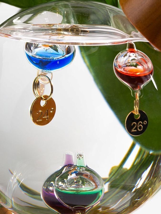 Термометр Галилео оригинальной формы, напоминающей глобус, добавит индивидуальности домашнему или офисному интерьеру. В основе его работы лежит физическая закономерность, впервые отмеченная великим Галилео Галилеем: плотность жидкости увеличивается при снижении температуры и уменьшается при ее повышении. И теперь стеклянные шарики в жидком парафине не только радуют глаз, но и позволяют с легкостью определить температуру в помещении.