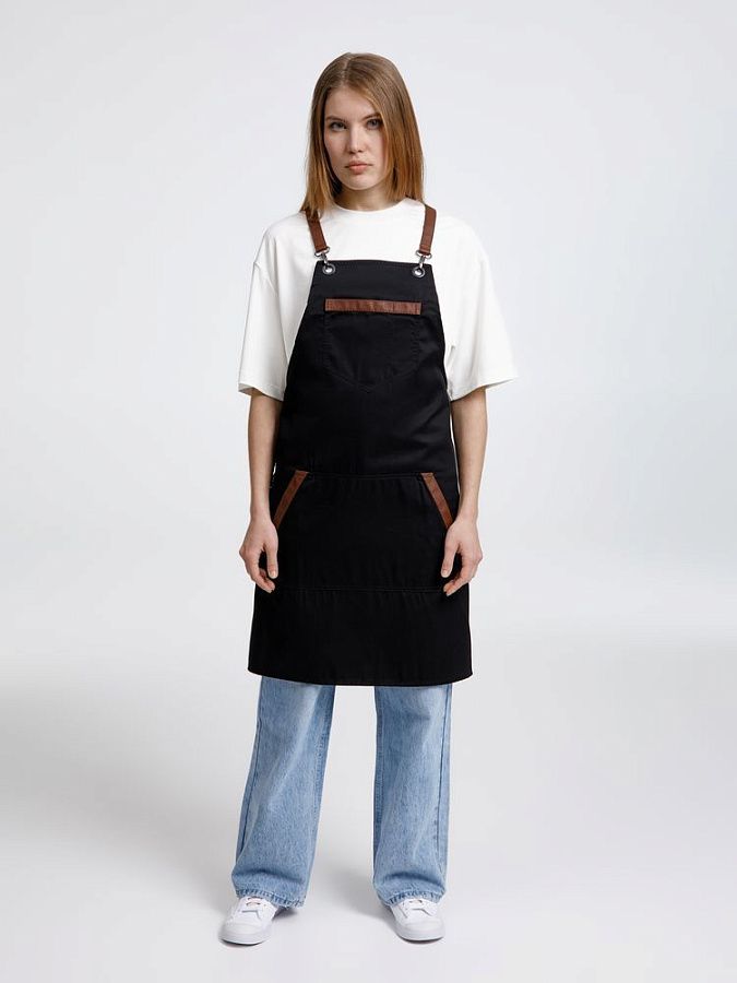 Функциональные карманы на груди и подоле эффектно украшают фартук, изготовленный из качественной дышащей плотной износостойкой ткани. Благодаря динамичным крестообразным лямкам он отлично сидит как на мужской, так и на женской фигуре. Кроме того, съемные лямки упрощают процесс стирки в стиральной машине.