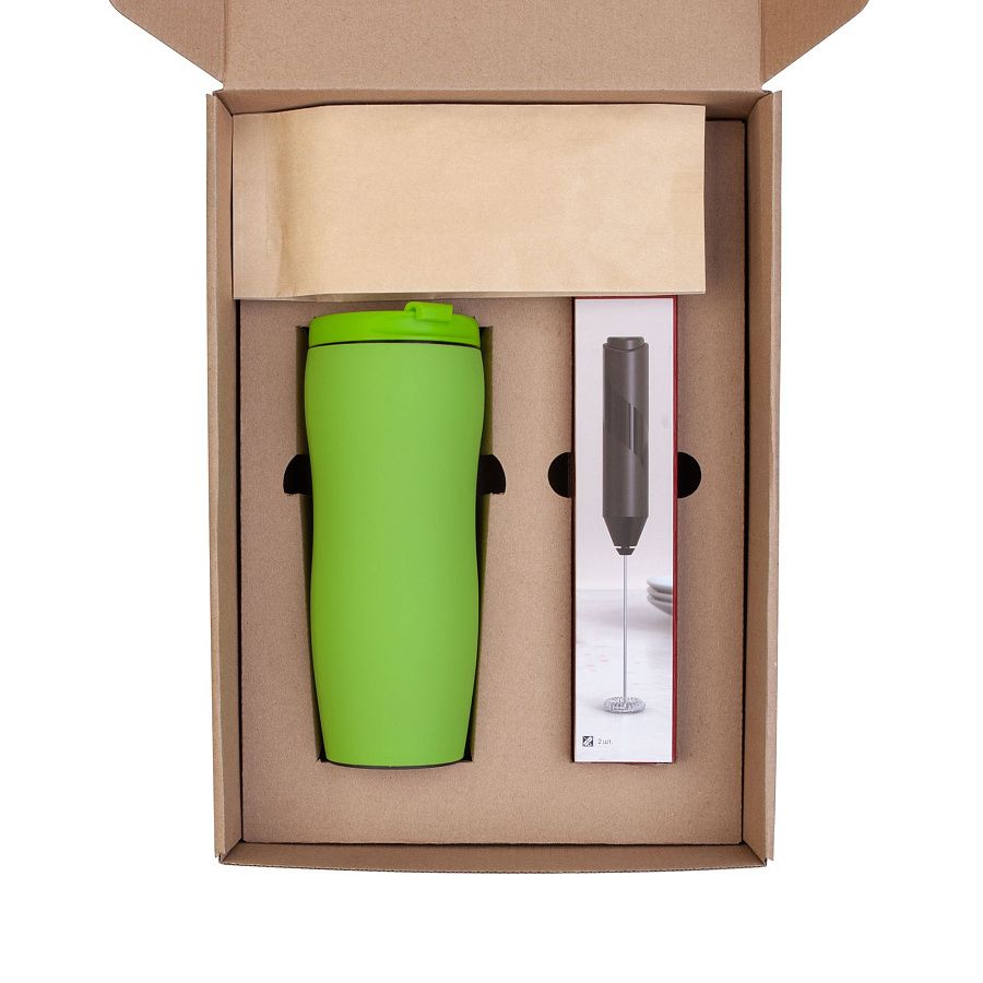 Набор, который станет приятным подарком для всех любителей кофе: зерновой кофе, термостакан и капучинатор для молока, чтобы ваш напиток получился с пенкой!