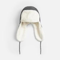 Модель: фактурная шапка-ушанка с подкладкой из флиса и искусственного меха.