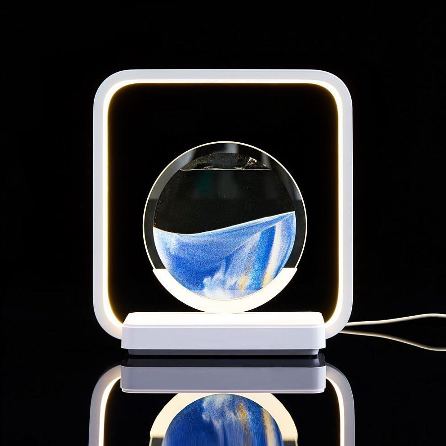 Если перевернуть круглую стеклянную вставку с песком, можно расслабленно понаблюдать за плавным перемещением песчинок в жидкости. Такой полезный для глаз антистресс с легкостью успокоит во время напряженного рабочего дня. Регулируемая подсветка внутри рамки создает еще больший акцент на картине, превращая Sandflow в стильный точечный источник света.